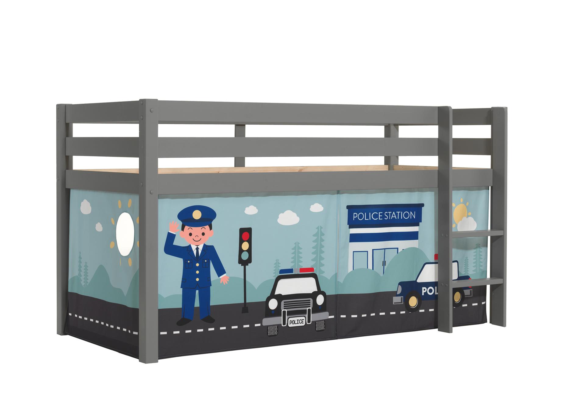 Halvhøj Juniorseng Med Forhæng Pino Grå Polititema
